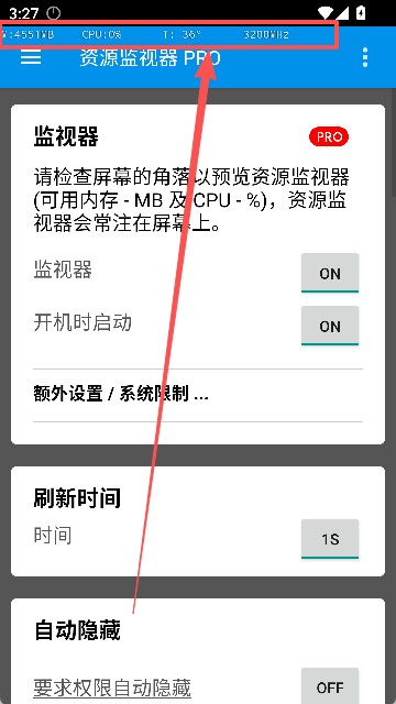 进入手机【设置】→【应用管理】→找到“资源监视器 PRO”→开启【显示悬浮窗】权限。