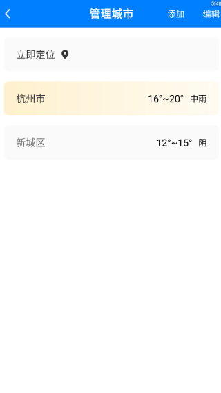 3、支持添加多个城市进行管理,左右滑动界面即可切换城市,查看不同的天气信息;