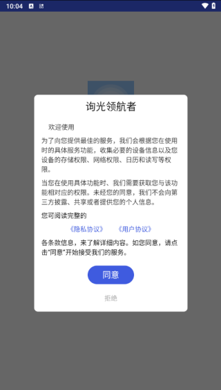 1、进入软件欢迎页面,阅读隐私、用户协议,点击同意按钮开始使用软件。