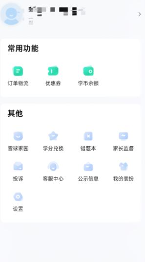 3、来到我的页面中有订单物流、学币余额、优惠券常用功能。