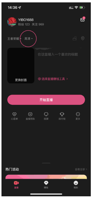 3. 选择直播清晰度