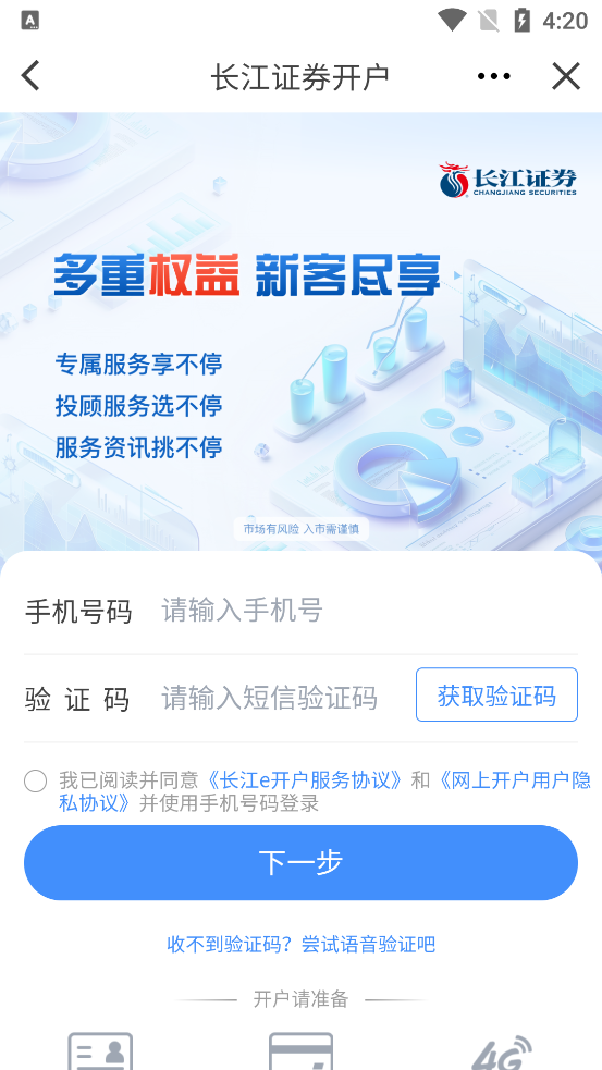 6、权限在线开通:创业板、科创板、新三板权限在线开通,助您挖掘市场投资新机遇。