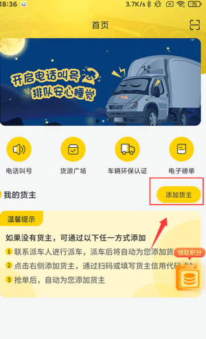 3、到达装货点或卸货点时可使用平台快捷服务,减少等待时长,完成后在App内更新订单状态。