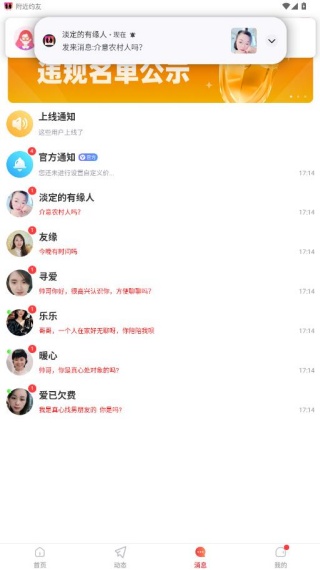 附近约友,一款和同城陌生人聊天的交友平台!致力于让聊天交友更精彩,社交更真实,更简单。帮单身男女找到自己的理想对象,实时在线互动,总有一个TA,愿意陪伴你!