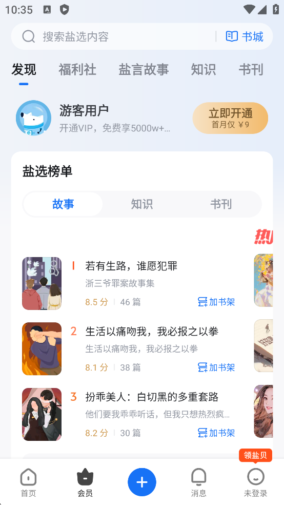 4、在会员功能区还有许多高质量故事和知识