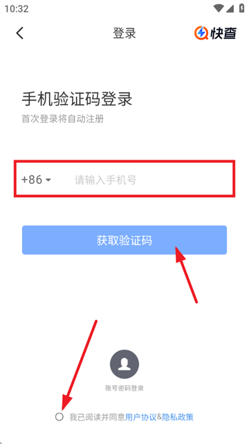 3、输入手机号,接着点击获取验证码并输入即可登录;