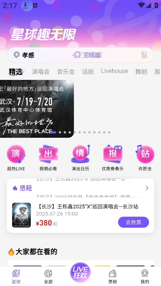 票星球官方app下载安装是一款专注于演出、赛事、展览等娱乐活动票务的智能购票平台,覆盖演唱会、音乐节、脱口秀、舞台剧、体育比赛、艺术展览等全品类票务服务。平台以“让买票更快乐”为核心理念,通过官方合作保障真票原价、不定时发放优惠券、智能推荐热门活动,为用户提供便捷、安心、高性价比的购票体验。无论是抢购热门演出票,还是规划周末娱乐行程,票星球都是您的贴心票务管家!