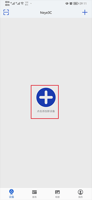 一、打开neye3c摄像头app,在首页中点击添加新设备