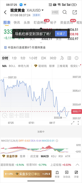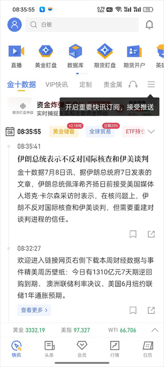 支持自定义订阅,7×24小时推送外汇、黄金、股票等实时资讯;