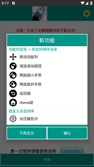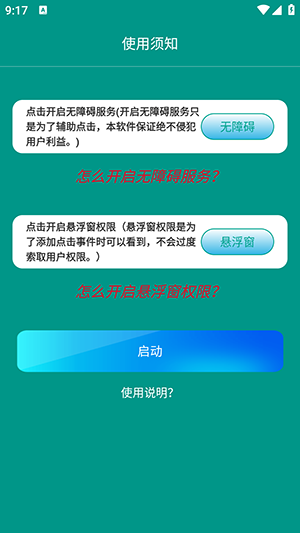 1、软件需要开启无障碍权限后才能使用。