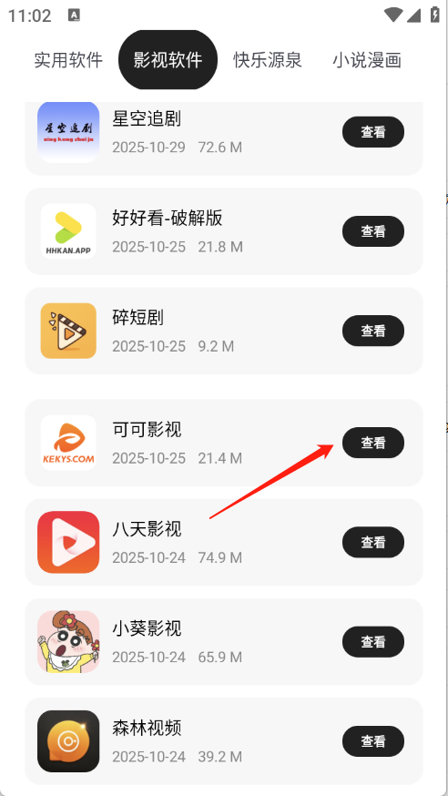 2、进入首页,有详细地软件资源分类,包含了影视类、小说类以及音乐类。