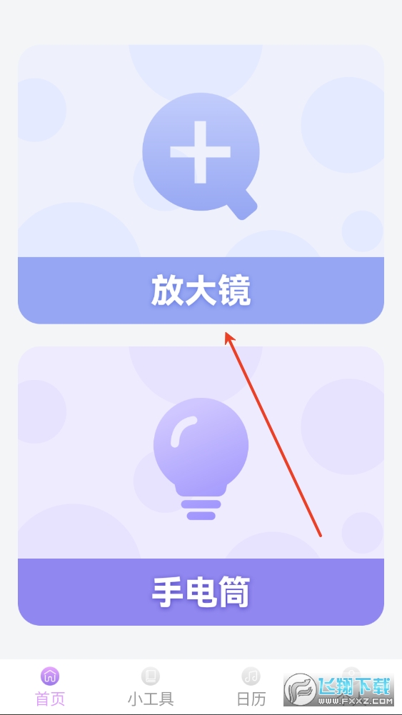 1、进入软件后选择放大镜功能点击;