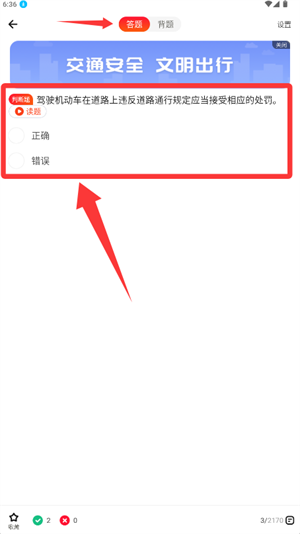 3、在答题界面根据题目要求选择选项,完成知识巩固训练。