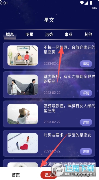 2、星文,主要以资讯内容为主,图文结合的形式为大家测算运势。