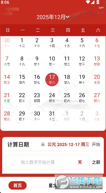 1、点击首页,可以查看日历万年历的各项信息,精确到每日每时。