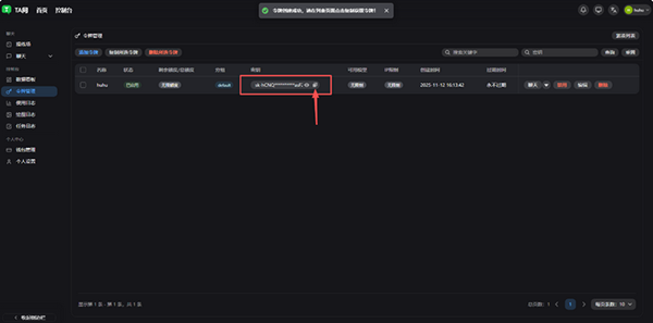 1、点击“获取密钥”