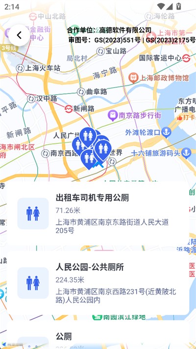 5、点击附近公厕会为你推荐附近的公厕位置,并且还会有详细的距离展示。