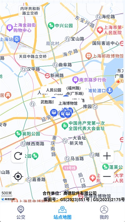 4、点击站点地图可以查看附近的公交站点,放大地图可以直接前往对应的站点位置;