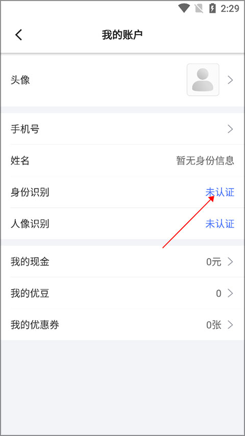 2、进入之后,再点击身份识别。