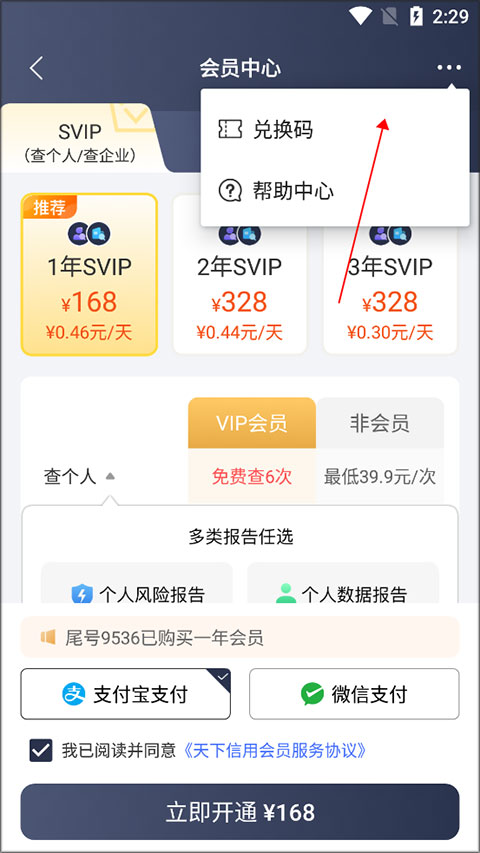 天下信用app怎么使用兑换码来兑换会员?