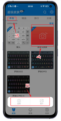 2、点击“本地”——“自定义”——“图片”