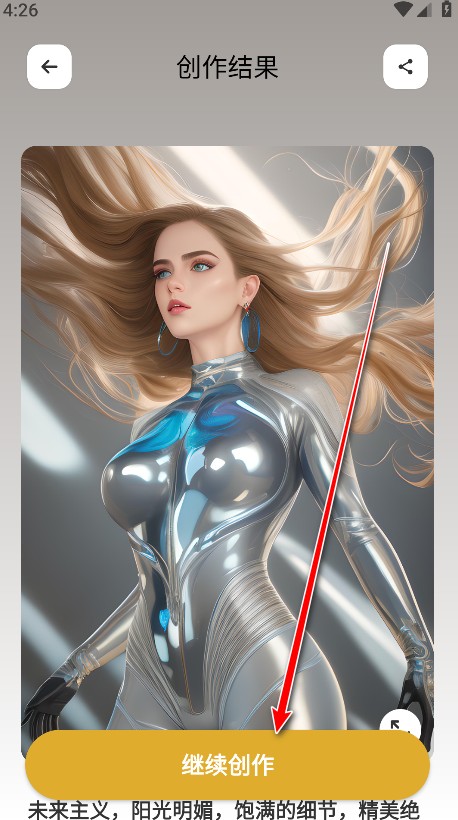 4.如下图所示,然后点击继续创作即可返回上一个页面进行文本内容更换了。