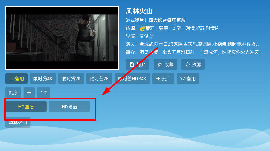 6、点开直接跳转播放,可以调整播放源和观看集数。