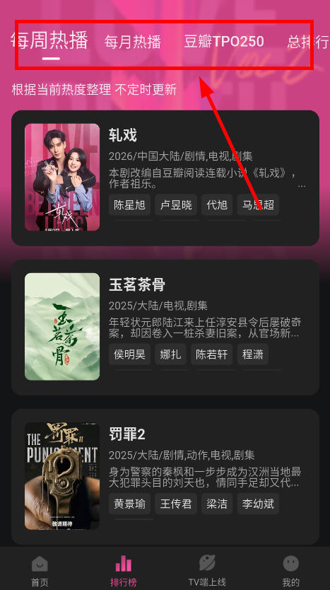 2、在首页浏览推荐的剧集,下滑可以找到更多类目的热门推荐;
