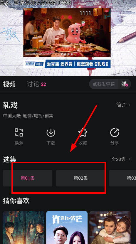 6、点开直接跳转播放,可以调整播放源和观看集数。