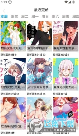 3、我们点击“最近更新”,在这里可以看到最近一周内上线的新漫画。