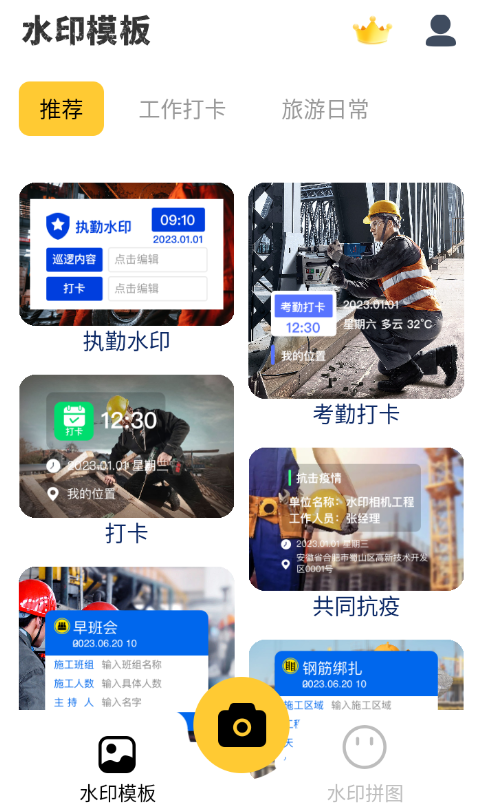 时间地点水印、天气水印、经纬水印、卡通水印、春节水印、打卡水印等多套模板,真实还原多种工作和生活场景,满足不同用户对水印样式的需求;