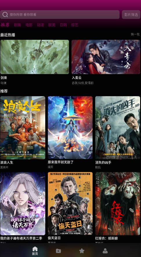 2、同意后进入首页浏览推荐,这里一般都是最新的热门剧集;