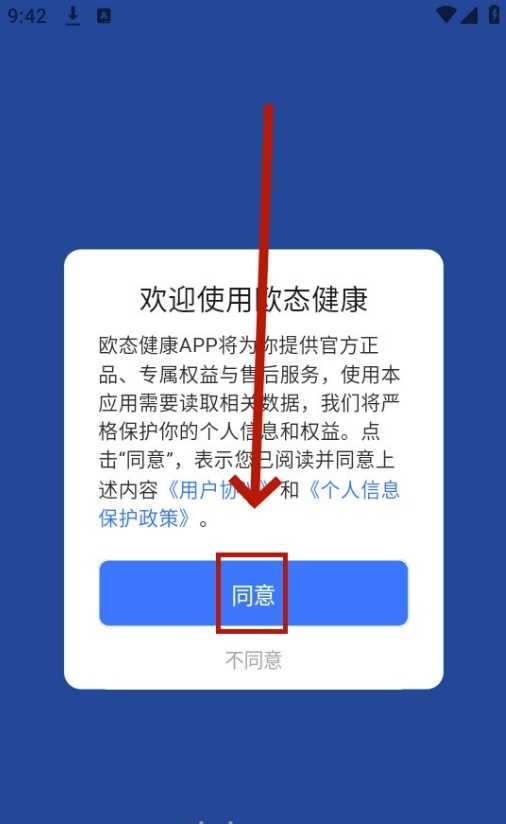 1、打开maitufit手表app后,点击“同意”以授权相关权限。