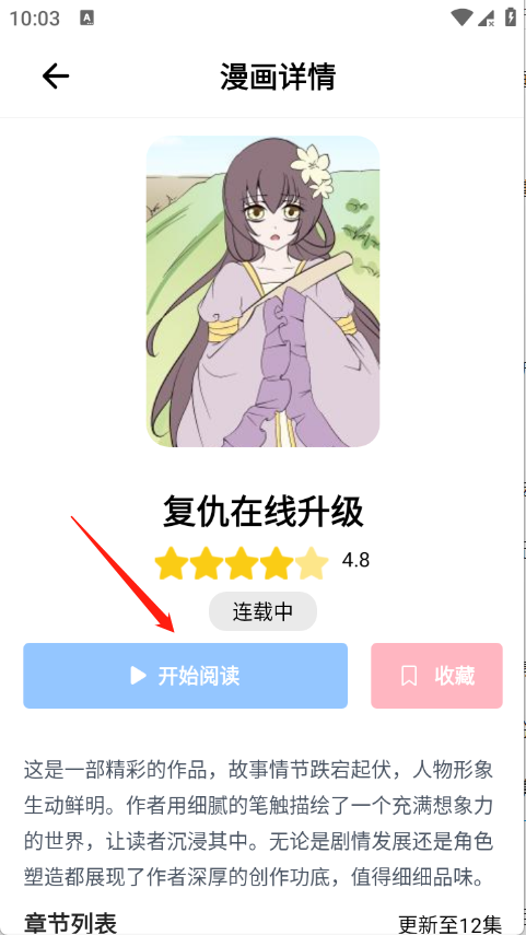 3、用户点开想看的漫画进入阅读页面,点击开始阅读。