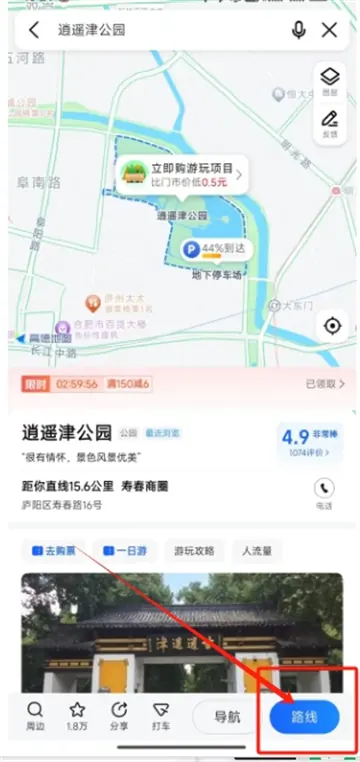 3、在搜索栏中输入目的地后,点击右下角进行路线导航。