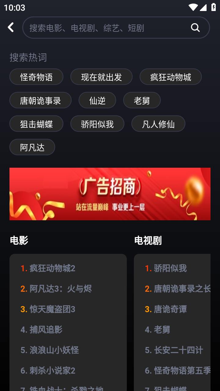 2.点击搜索框,输入关键词查找影片。