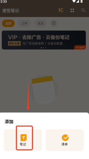 1、下载并打开便签笔记app,在主界面点击加号按钮,创建一条新便签。