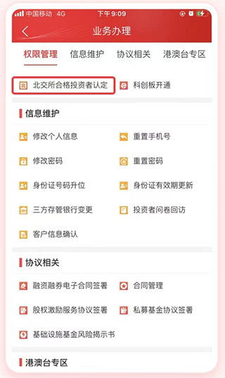 如您需要开通北交所交易权限,可在“我的"一“业务办理”一“北交所合格投资者认定”功能中办理。