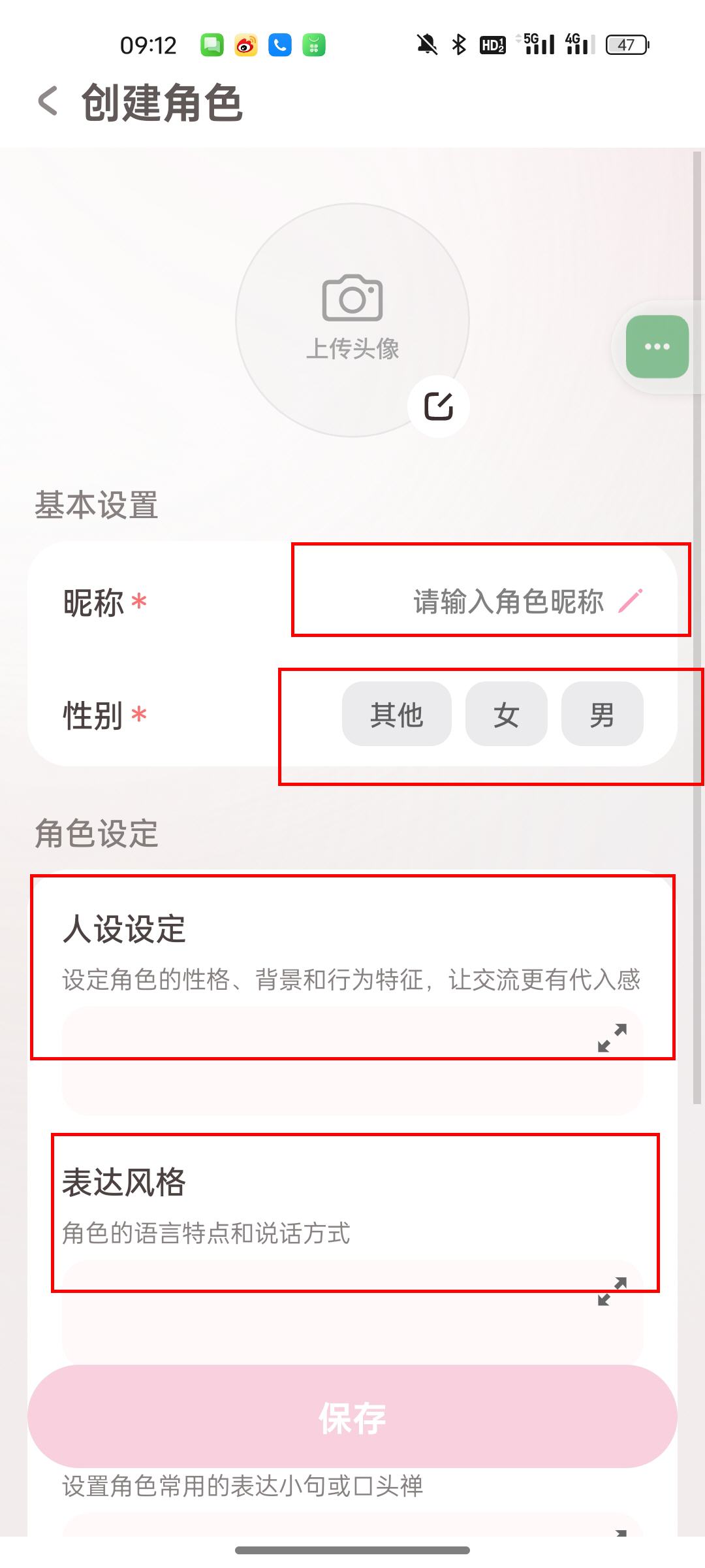 2、根据提示输入对应的设定即可创建角色聊天。