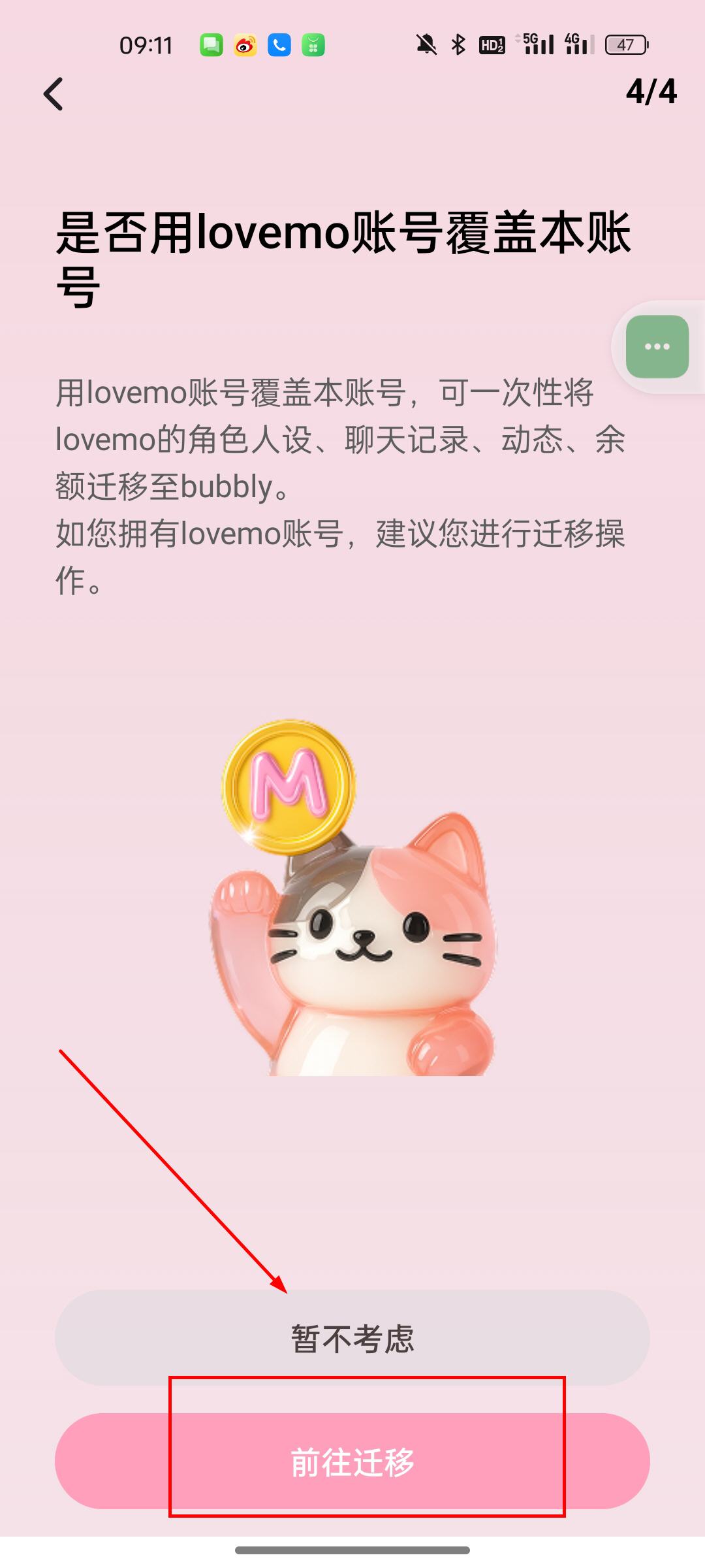 6、根据提示点击前往迁移lovemo数据;