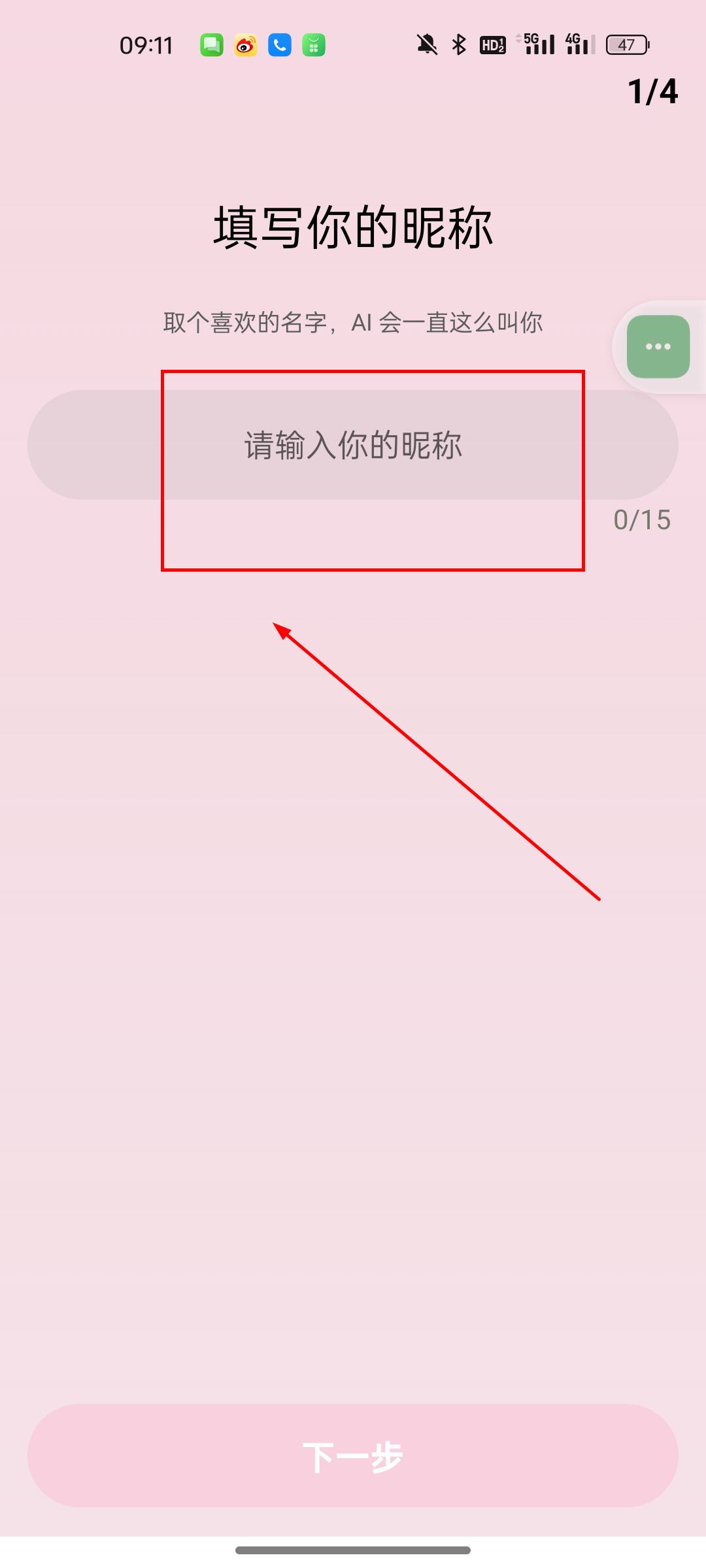 4、输入昵称;