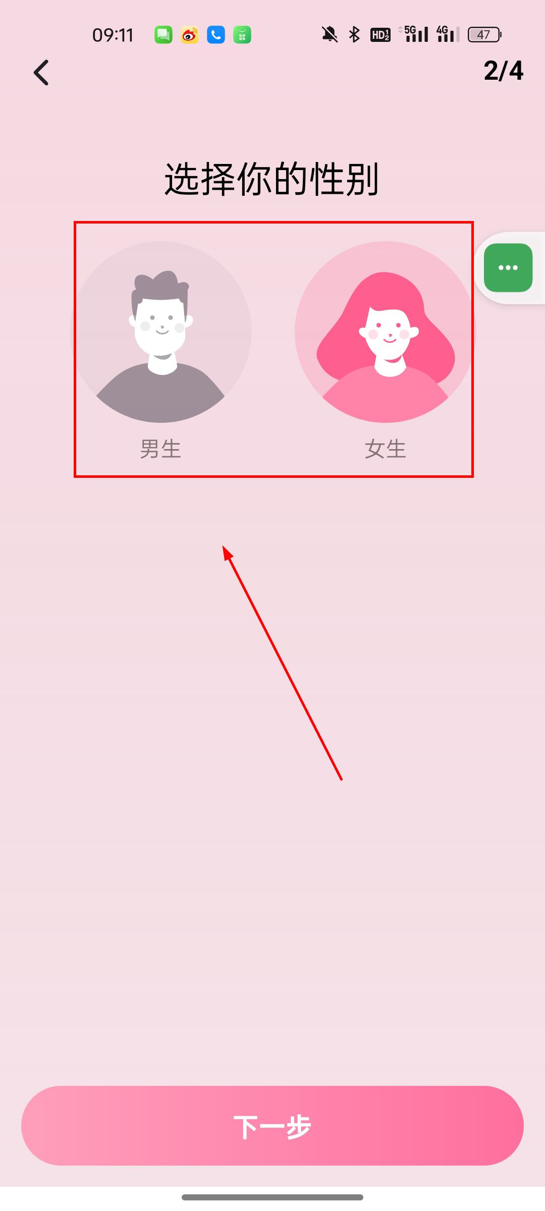 5、选择性别等基础设置;