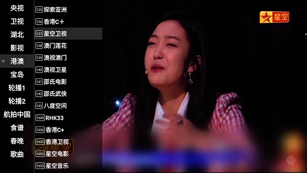 2、电视端用户使用遥控器按菜单键唤起电视频道列表,手机端用户点击左侧屏幕点两下可以唤起。