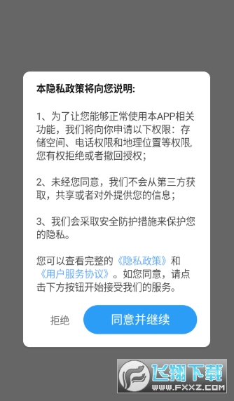 1 首先打开软件点击“同意并继续”按钮进入APP