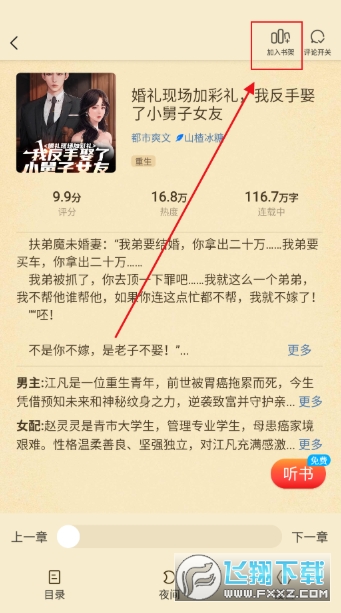 1、点开想看的小说进入阅读页面,点击右上角的加入书架;