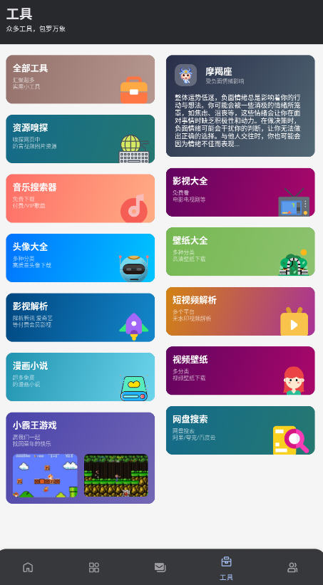 界面采用“分类导航+智能搜索”双模式,支持关键词模糊匹配(如输入“剪辑”即可显示所有视频编辑工具),3秒定位目标资源。