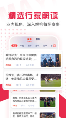内置「球迷圈」功能,可针对比赛结果、战术选择或球员表现发起投票、发表评论,与同好实时讨论,更有机会与赛事专家互动答疑。