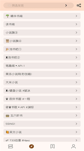 1、打开软件点击底部的第二个图标可以看到许多的书源