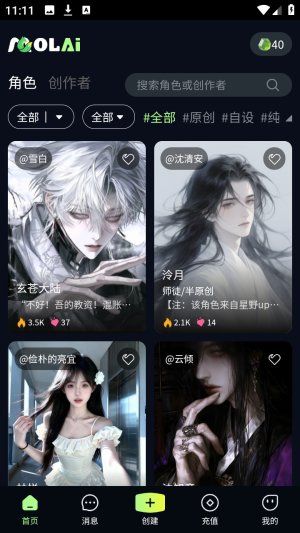 7、支持搜索角色名称或创作者,可按#原创#、#自设#等标签筛选,快速定位目标内容。