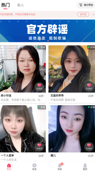 3、线上注册比较简单,用户登录成功就可以进入交友中心。